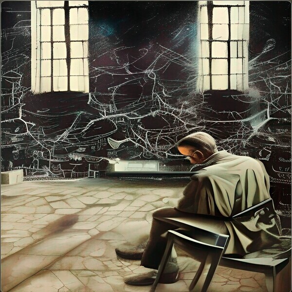 Alan Turing used to work alone for long hours. This artwork is an attempt to depict the same.
